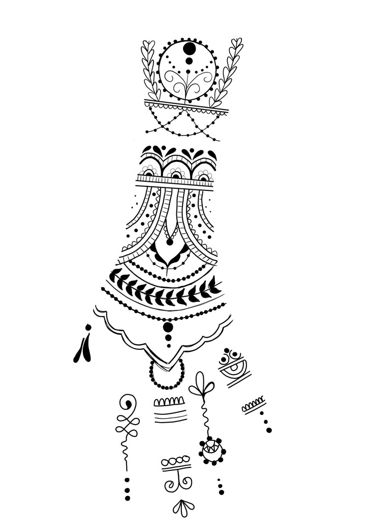 Этот дизайн довольно современный и весьма шикарный по стилю. Она не имеет ничего общего с какими-либо праздниками или традициями и носить ее можно так же, как татуировку. Выглядит очень красиво и по-девичьи.