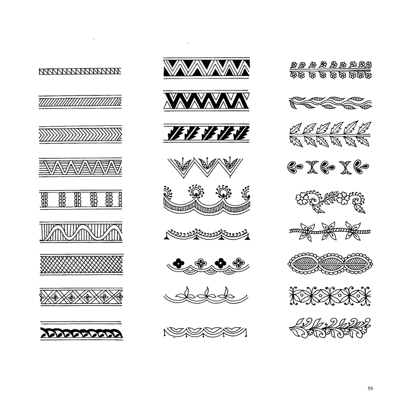 Этот дизайн похож на предыдущий. Однако разница в том, что этот дизайн имеет много замысловатых узоров по сравнению с жирными линиями выше. Дизайн состоит из сетки, цветов, листьев и точек, которые нарисованы в такой элегантной манере, что этот дизайн довольно хорошо выделяется. Подобные дизайны являются отличной заменой ювелирным украшениям, подходящим для долгих праздников или торжеств. Соответствующие промежутки, оставленные между ними, придают дизайну аккуратный вид, а также отмечают его как нечто современное.