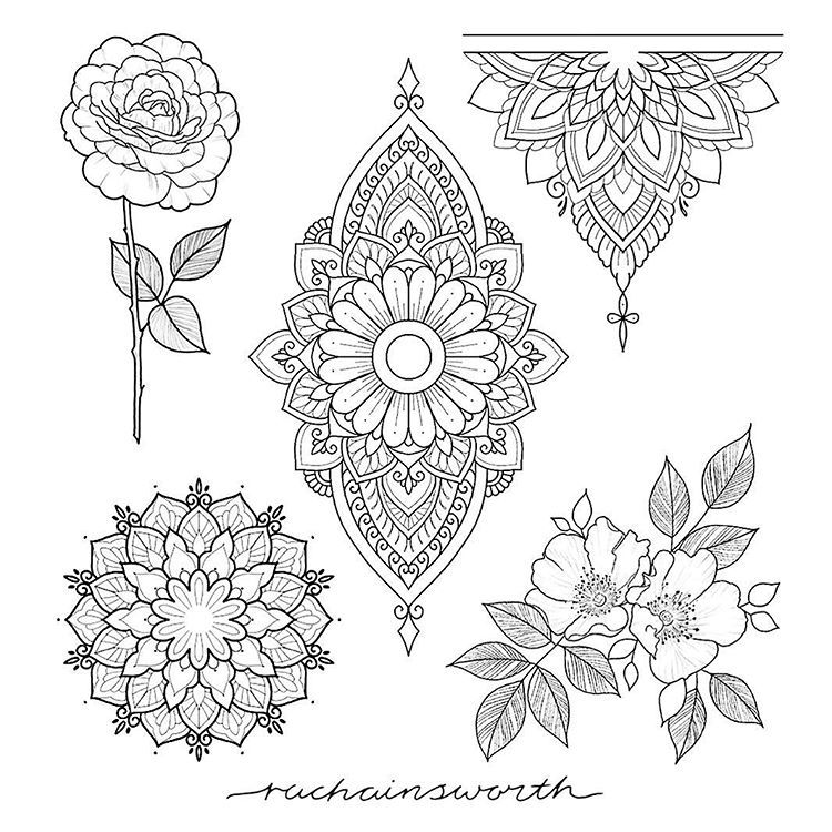 Для этого дизайна вам нужно расположить несколько цветочных орнаментов на расстоянии друг от друга и покрыть пробелы любым узором из линий, которые желательны.