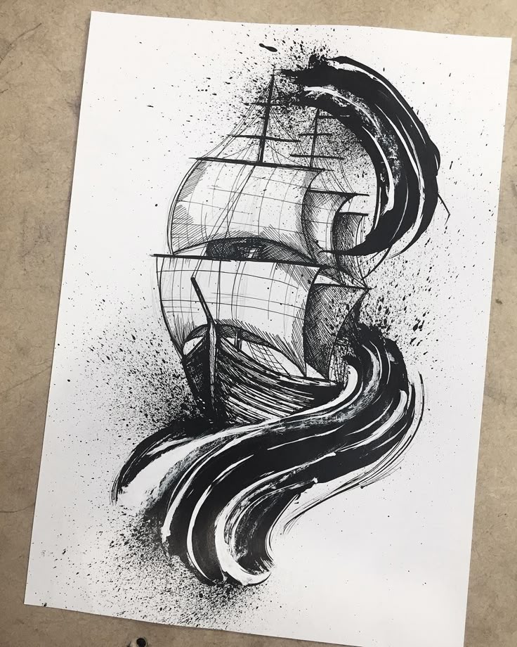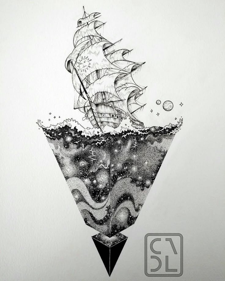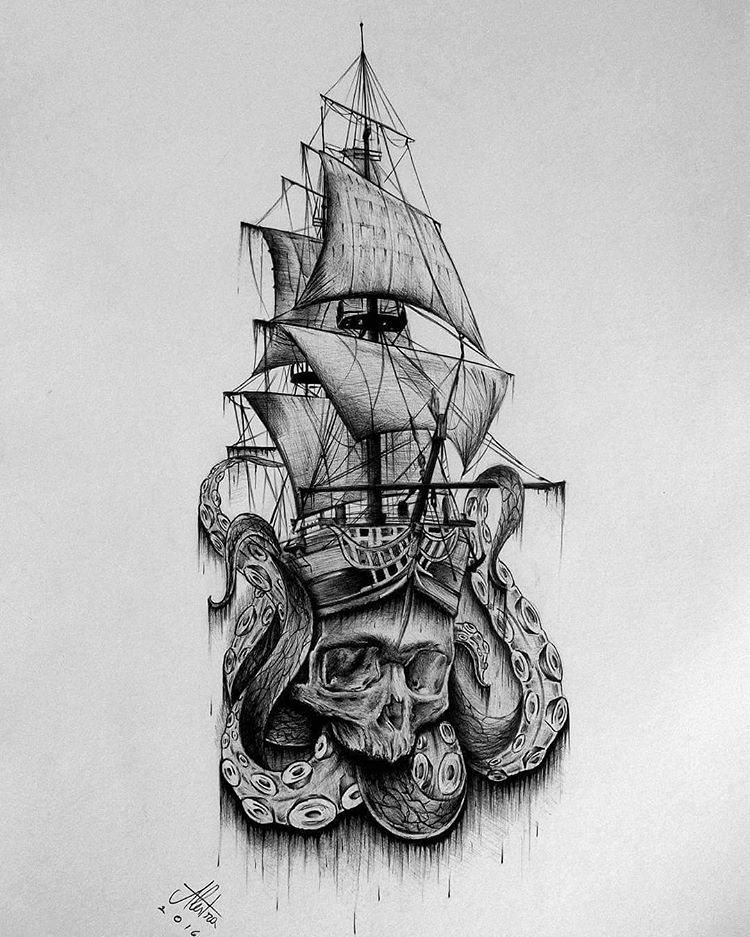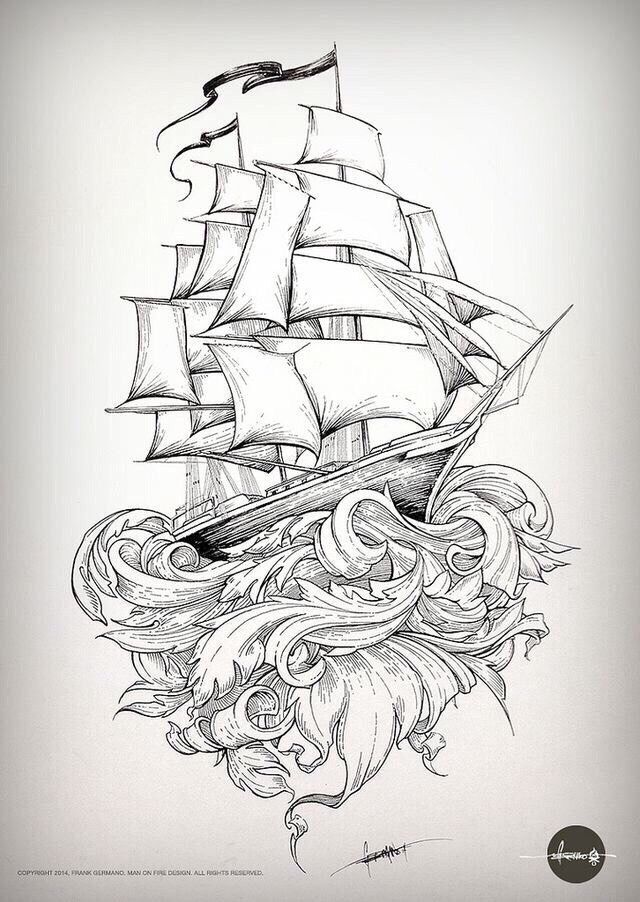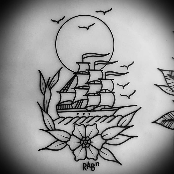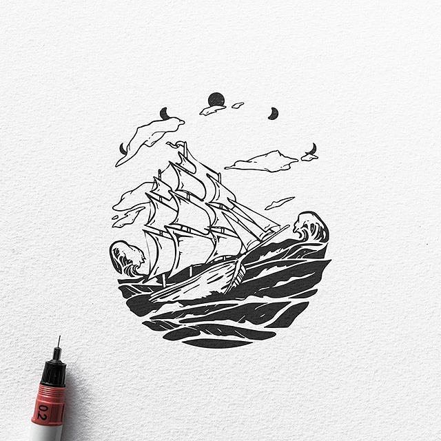 Источник: @ladysky_tattoo(художник) из Instagram . Есть даже классические пиратские или клиперные корабли, которые моряк мог бы нарисовать в свое время.
