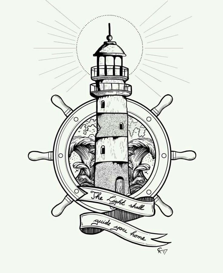 Иногда такие татуировки дополнены маяком. Он отображает путеводный свет. Хозяин такого рисунка желает показать, что он всегда ищет выход из трудной ситуации.