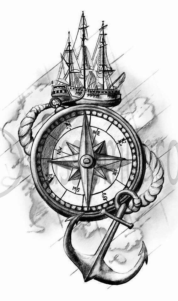 Очень часто встречаются наколки с компасом и морем. Это символ четкого курса по жизни, твердых убеждений в своих принципах. Компас – помощник для людей в поисках точного направления в море, спасения их от гибели.