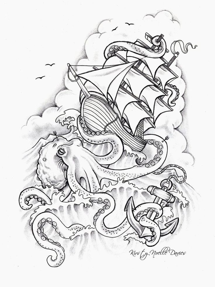 У таких тату есть свой скрытый смысл, морской обитатель прочно ассоциировался с Кракеном и темнотой морских глубин, таящих в себе много опасностей, связанных с риском для жизни.