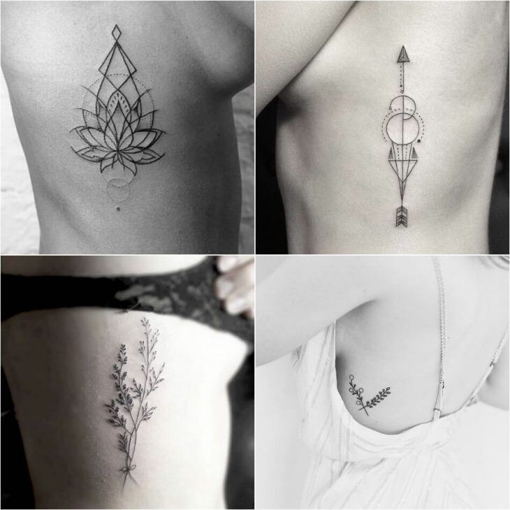 Тату на ребрах бьют с целью подчеркнуть красоту тела или украсить чистую кожу. Особенность эскиза заключается в наклоне рисунка под углом от 75° до 60°. В редких случаях угол равен 30-35°.
