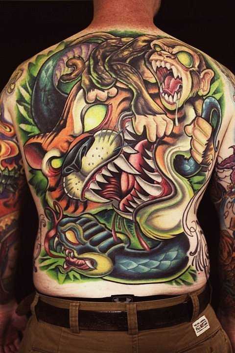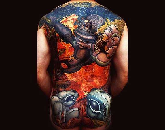Среди разновидностей стиля, которые можно выделить, — дикий нью скул. Такие тату в обязательном порядке включают в себя текстовые фрагменты или граффити-элементы. Кибер-панк характеризуется смешением компьютерной темы и темы чудовищ-мутантов. Как результат — украшающие спины, плечи, ноги монстры из знаменитых и не очень игр для ПК.