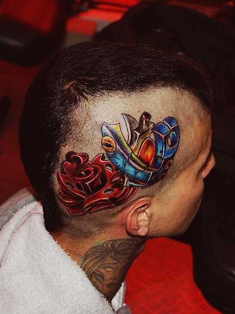 – Эскизы ньюскул выглядят довольно объемными, что в купе с ядовитыми красками еще больше привлекает внимание. Очень круто смотрятся розы ньюскул. И скажу вам по секрету, их даже больше любит стилизовать мужская половина человечества, дополняя этими прекрасными цветами, основных действующих лиц изображенных на эскизах тату ньюскул.