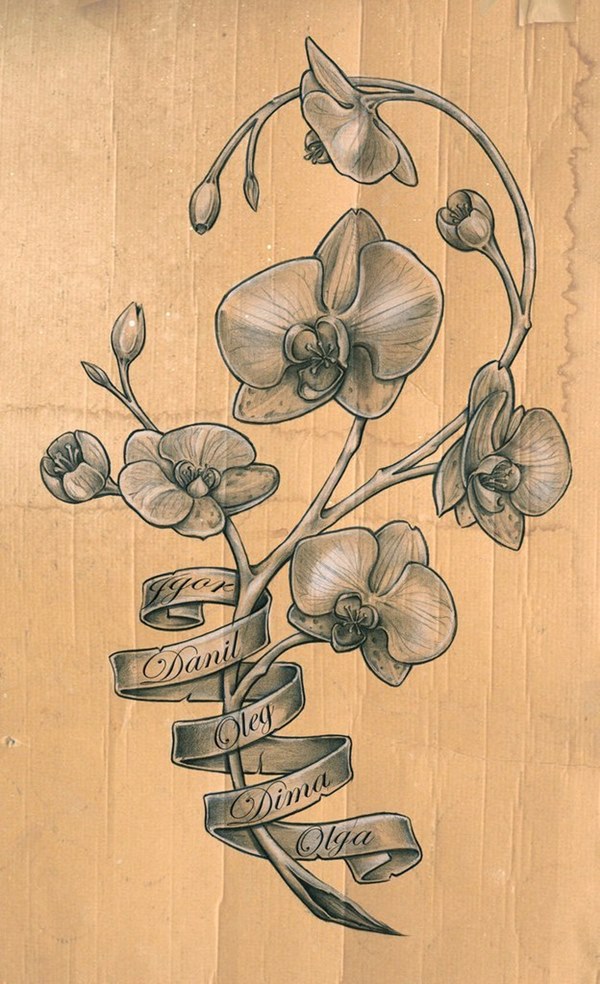 Парни, как правило, делают простую татуировку орхидеи, чтобы представить своих близких.