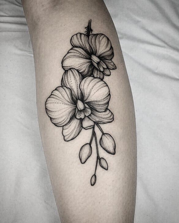 Попробуйте эту великолепную серо-черную татуировку с орхидеей, которая выделит вас.