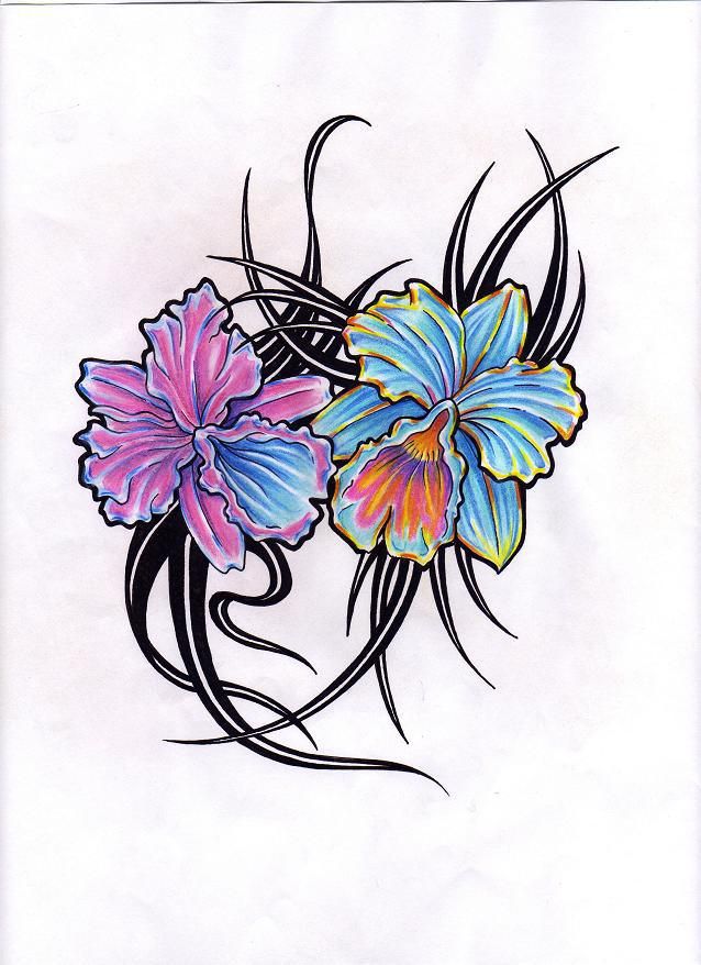 Красный, розовый, пурпурный, синий и желтый являются наиболее часто встречаемыми в эскизах тату орхидей. Cattleyas – одна из наиболее популярных разновидностей орхидей, которые используют в качестве татуировки, символизирующей страсть.