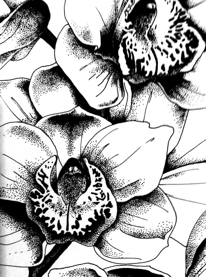 Уникальные рисунки орхидей, выполненные черными чернилами, как символ простоты, надежды и новых начинаний.
