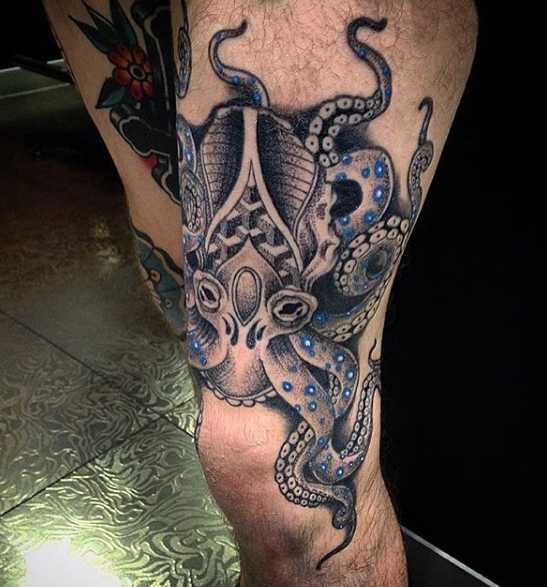 Цветная татуировка осьминогаМесто нанесения татуировки