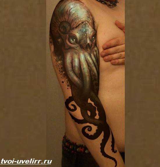 Тату осьминог может иметь разное значение, в зависимости от композиции и вложенного в изображение смысла. Во многих культурах существуют легенды о страшных морских чудовищах, побороть которых способны лишь сильные духом герои.