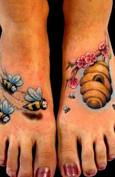 Наибольшее распространение получила татуировка в виде пчелы, парящей над цветком.