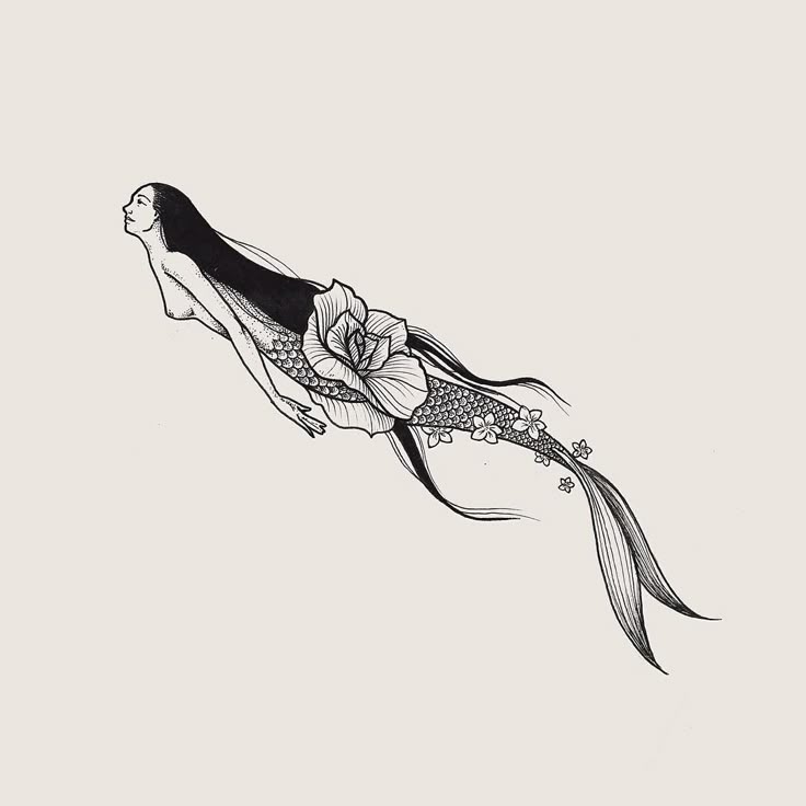 Опять же, русалки — отличный объект для этого подхода благодаря разнообразию текстур, содержащихся в одной фигуре. Противоположные текстуры чешуи, кожи и волос означают, что даже татуировка русалки в виде линий по-прежнему содержит достаточно контраста, чтобы оставаться интересной.
