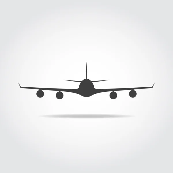 Verkehrsflugzeug-Silhouette auf weißem Hintergrund.