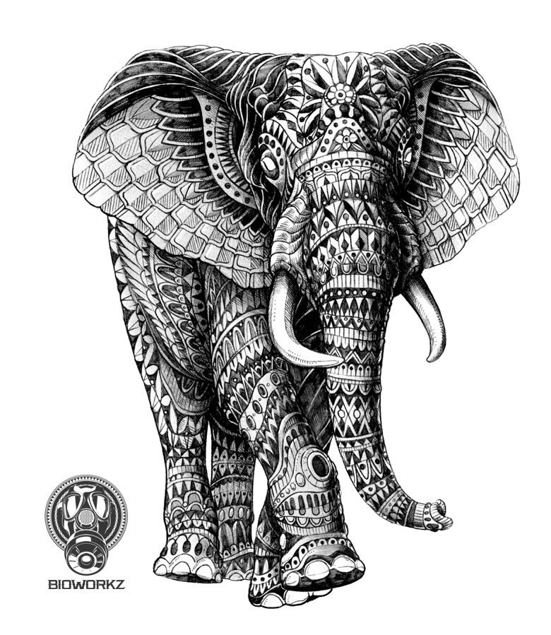 Слон тату гравюра целеустремленность
