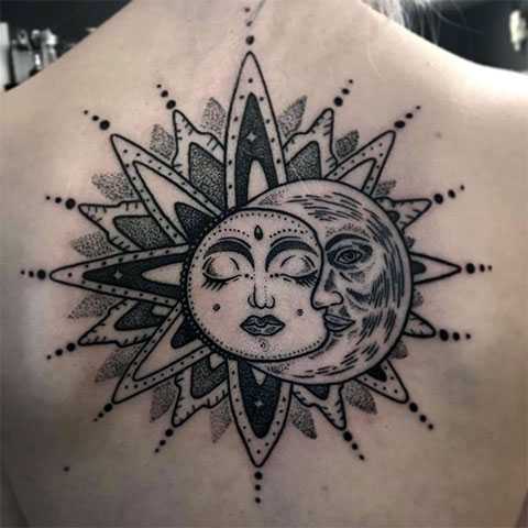 Солнце и Луна — небесные светила, существующие в противовес друг другу. Так и в изображении на теле они могут быть едины или намеренно противопоставляться.