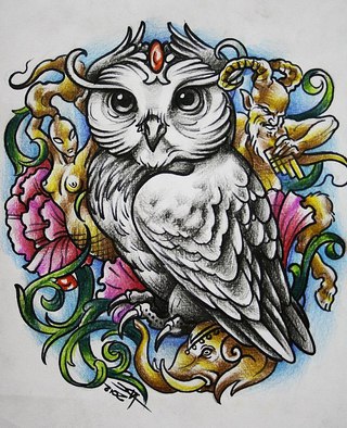 На некоторых татуировках изображена сова с ключом или другими символами. В детальной проработке татуировки можно показать лучшее из его искусства.