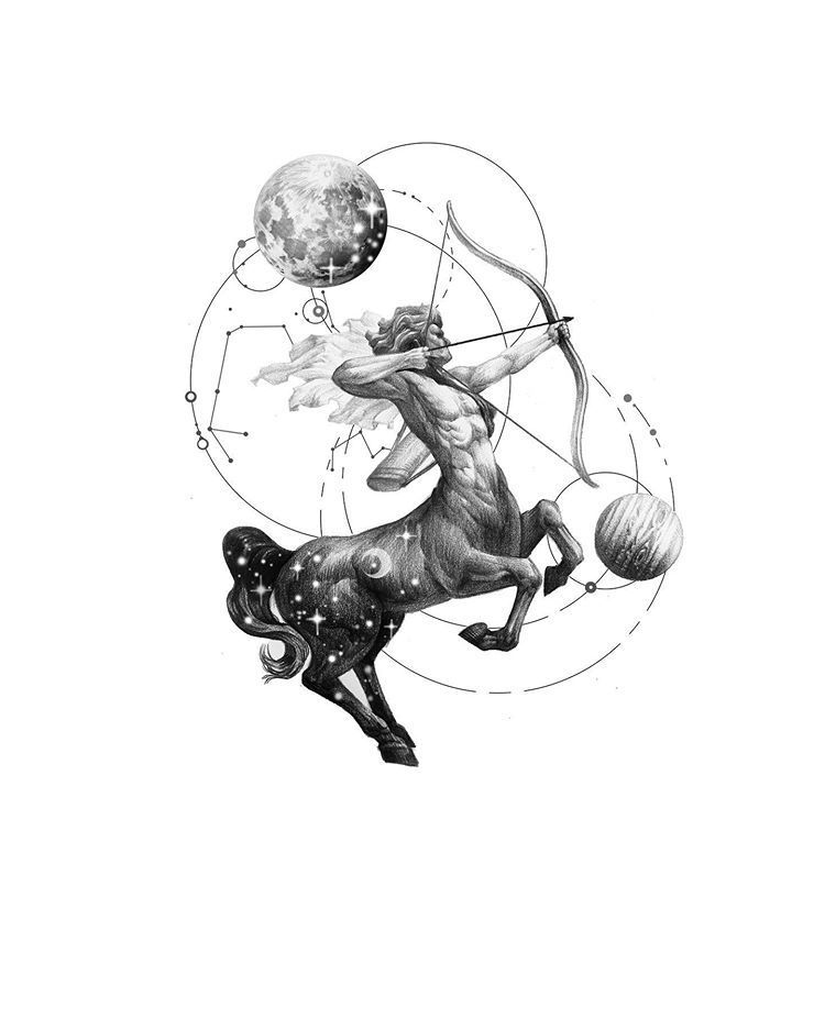 Эскиз татухи знака зодиака стрельца