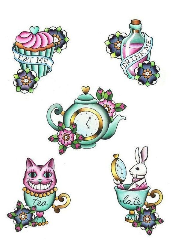 Тату алиса в стране чудес векторов скачать бесплатно графический дизайн