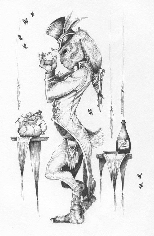 Образ кролика из фильмов и мультфильмов посвященных Алисе идеально подходит целеустремленным натурам с хорошим чувством юмора. Его рисуют как в реализме, так и в различных направлениях: акварель, графика, геометрия, скетч стайл, черно-белая и т. д. Предпочтение отдается цветной гамме, поскольку это позволяет полностью раскрыть образ.
