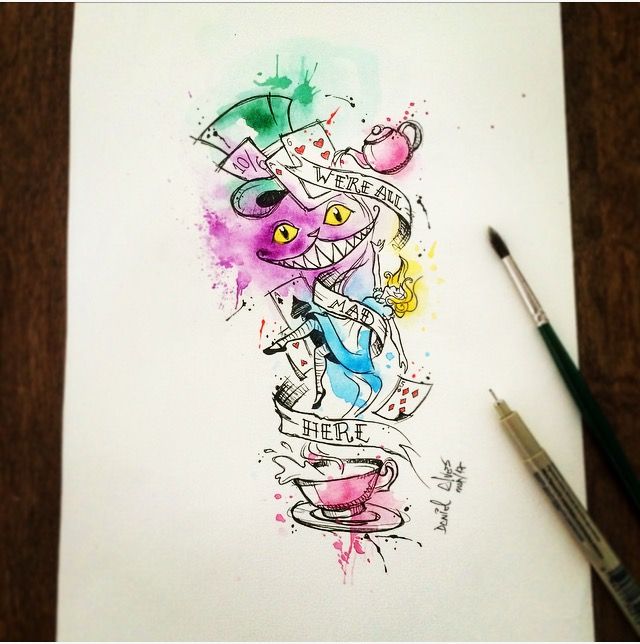 Любители татуировки и художники были очень вдохновлены захватывающими чертами Алисы в стране чудес, что привело к созданию татуировок, которые довольно богаты функциями и великолепным сочетанием цветов. Тату Алиса в стране чудес, приведенный ниже, является отличным выражением особенностей истории, которая идеально сочетается даже с местом, где ее носят.