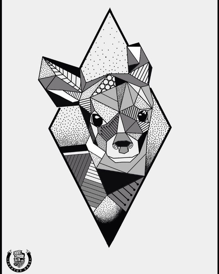 Сюжеты будто недоработаны, оживают прямо под рукой мастера. Или разбивает оковы простых форм. Переплетение фигур, узоры, браслеты из треугольников, квадратов также относятся к трендам. Рисунки, выполненные такой техникой, могут быть любого размера: от небольших до занимающих все бедро, спину, область ребер. Эффектно смотрятся геометрически оформленные образы животных и птиц.