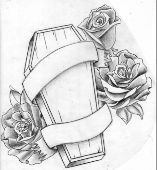InstagramОбычно вы найдете татуировку гроба, выполненную темными и черными чернилами. Мы обнаруживаем, что это имеет место в этом первом примере гроба и розы с шипами, которые выглядят такими острыми!