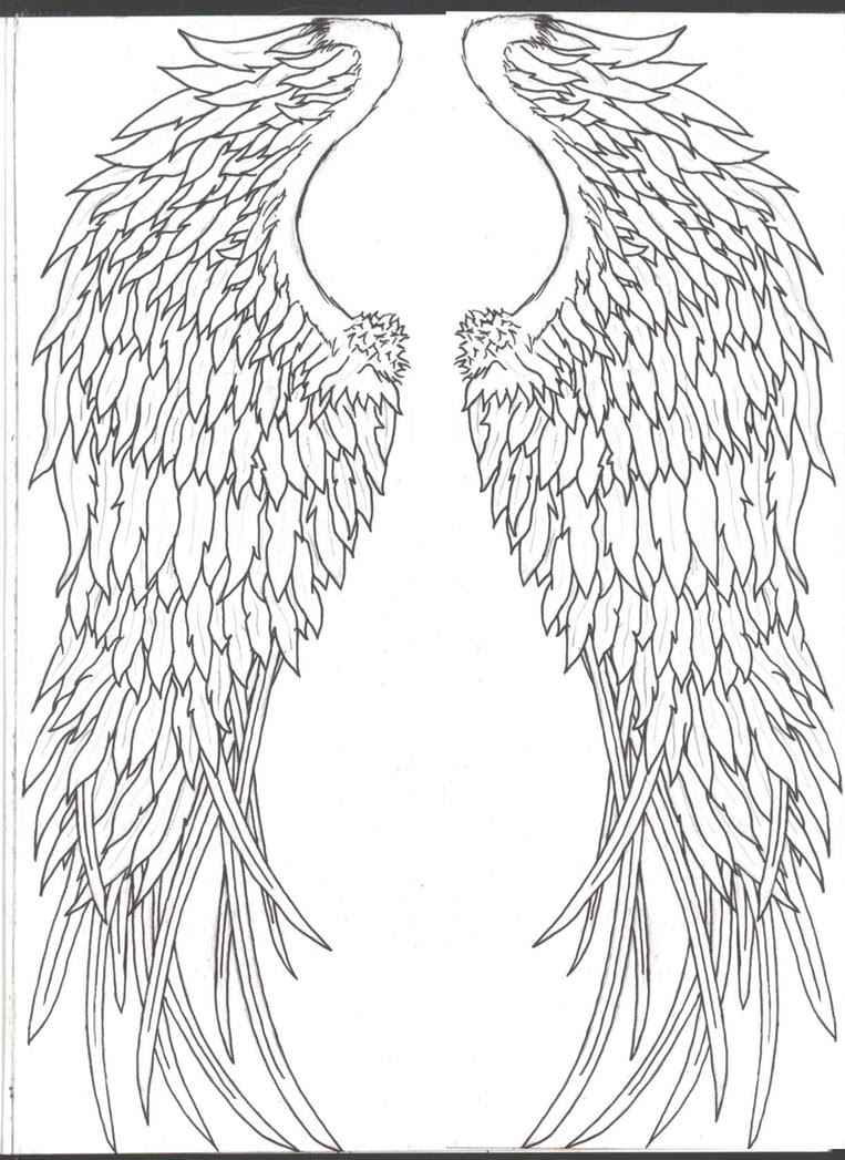 Эскиз может также состоять из обоих вариантов сразу по одному крылу от каждого. На одной стороне спины крыло с перьями, на другой зловещий вид из преисподней.