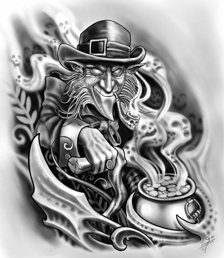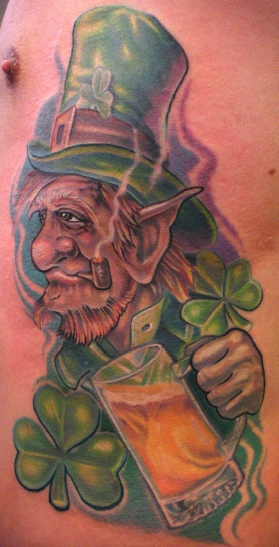 Лепреконы были очаровательными персонажами преданий и легенд с давних времен. Обычно на татуировках лепреконов изображают веселыми и безобидными маленькими существами, держащими в руке пиво и курящими трубку с вкусным табаком.