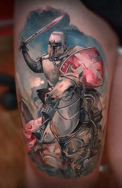 - Любовь к культуре Средневековья. Еще одна трактовка тату с рыцарем.