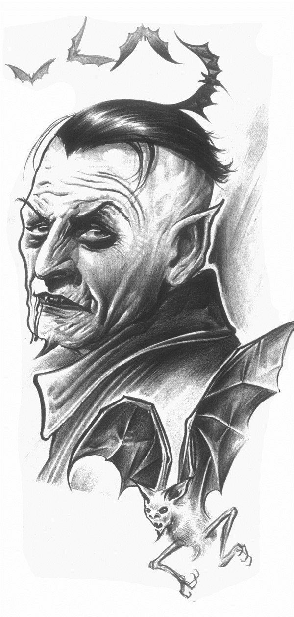 И, конечно, вне конкуренции образ графа Дракулы. С легкой руки Брэма Стокера реальный человек давно превратился в почти что культурный архетип. Тату могут быть основаны на рисунках из романа и его многочисленных экранных и сценических воплощений.