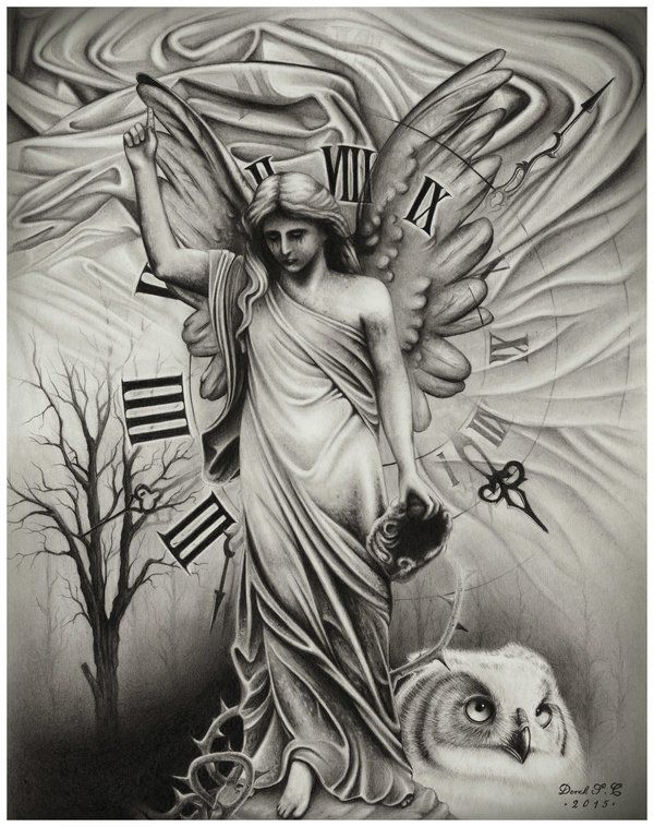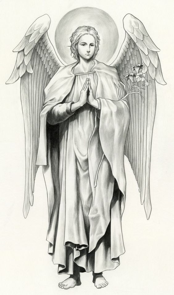 Далее смотрите примеры эскизов тату с ангелами и крыльями: