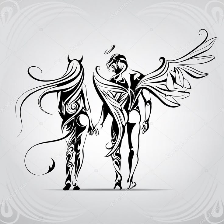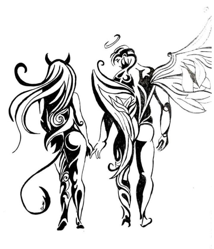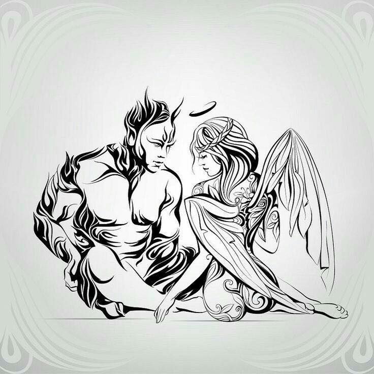 Минимальные идеи татуировки ангела-дьявола с их символами