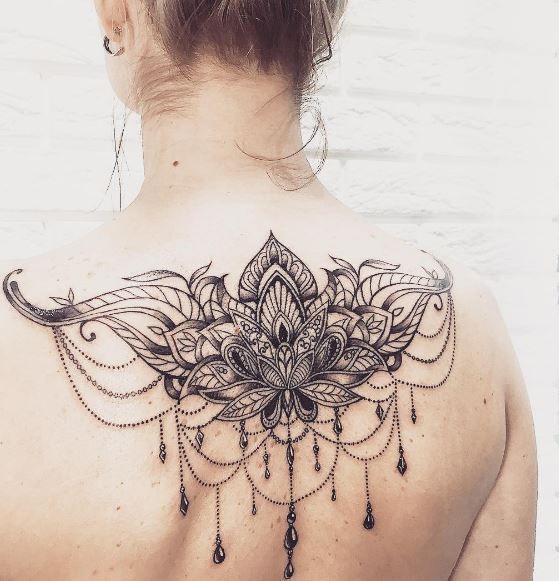 Если вы все еще не знаете, что выбрать, выберите эту татуировку мандалы на спине. никогда нельзя ошибиться с татуировкой мандалы на спине для девушек. дизайн мандалы начинается с круглого рисунка в центре и расширяется аналогичным образом. Это потому, что мандала считается представлением круга жизни. Более того, каждая мандала уникальна.