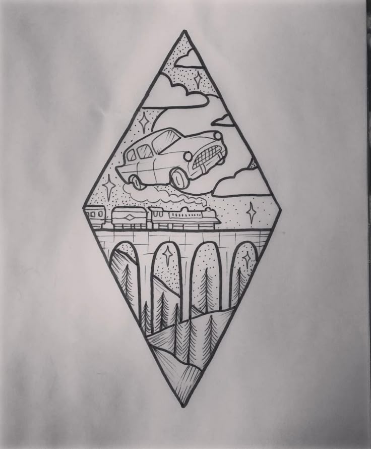Этот захватывающий дух полурукав (на самом деле это полный рукав в процессе) иллюстрирует, насколько на самом деле потрясающий Хогвартс. Кристиан Кимонидес, татуировщик из Австралии, показывает замок издалека под звездным ночным небом вместе с летающим Ford Anglia Артура Уизли.