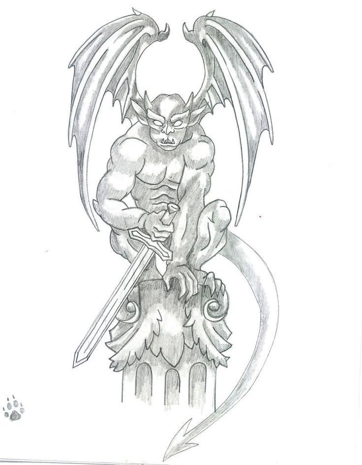 6. Чудесный рисунок татуировки горгульи с мечом для мальчиков