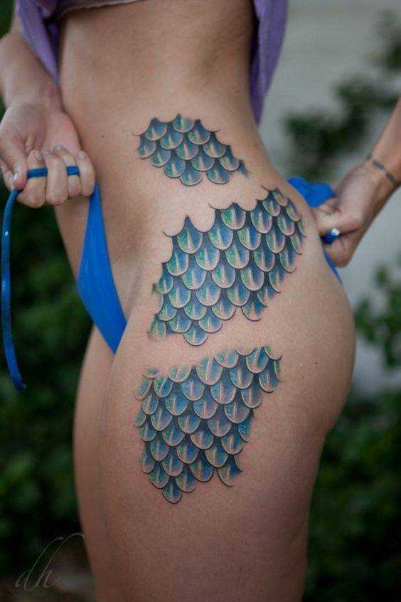 Рисунки по краям бедер имеют склонность к их уменьшению. Многие девушки стремятся достигнуть идеальных пропорций песочных часов при помощи затемнения боковых частей бедра.