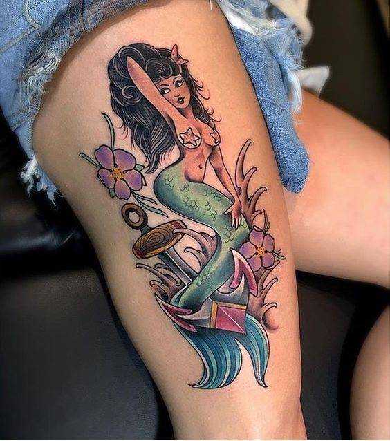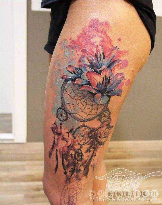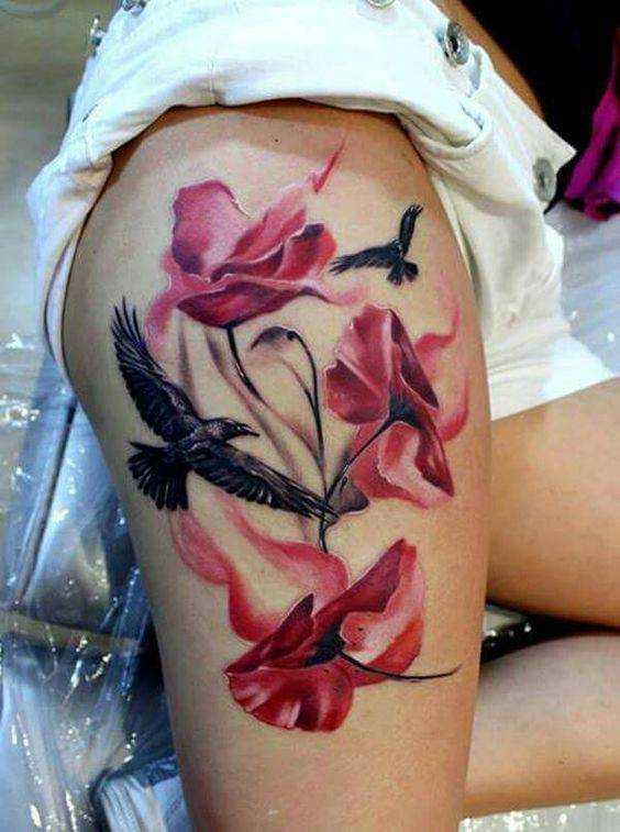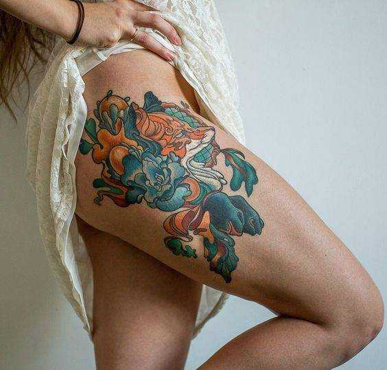 Существенно на выбор влияют предпочтения заказчицы. Как правило, сегодня чаще всего на бедра девушки наносят себе (заказывают в тату салонах) тату поярче и покрасочнее.