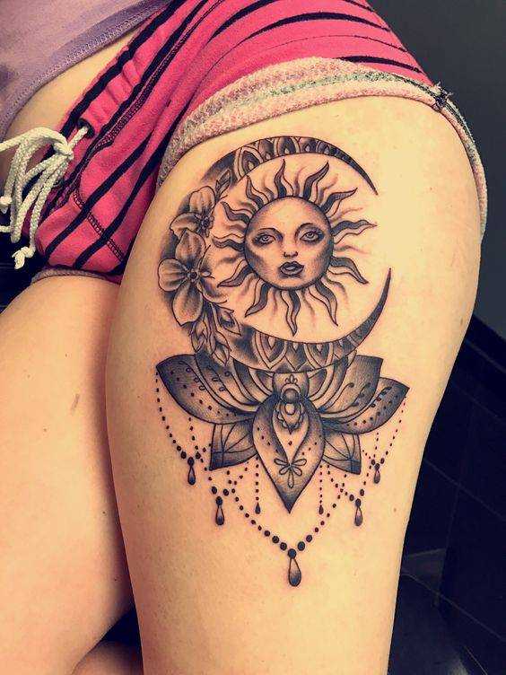 Каждая девица тяготится подчеркнуть свою индивидуальность и красоту различными методами. Кто-то подбирает максимально подходящую одежду, в то время, как другие делают татуировки. Безусловно же, есть много частей тела, где рисунок будет смотреться притягательно. Но не подметить знаменитость его размещения именно на бедре немыслимо. За счет того, что площадь в этой зоне достаточно огромная, дозволено проявить фантазию и предпочесть объемный, огромный рисунок. К тому же, при необходимости его легко утаить под одеждой.