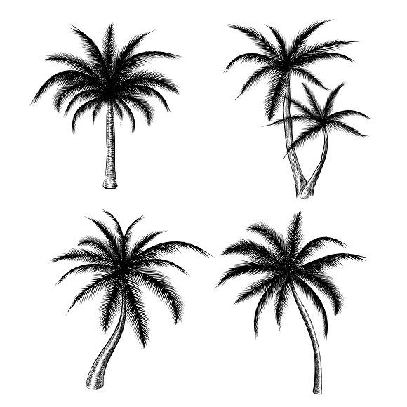 Рисунок с изображением пальмы может быть нанесён вместе с другими предметами или на фоне какого-либо пейзажа.