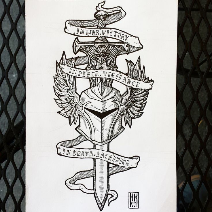 Один из способов персонализировать этот рисунок — совместить его с номером вашей дивизии или рода войск, в котором вы служили. Размещая эту информацию на щите, вы показываете, что поклялись защищать их. Другая версия этого дизайна состоит в том, чтобы включить герб или цвета вашей страны на щите, в основном, если вы служили в вооруженных силах своей страны. Таким образом, становится очевидным, что вы защищали и боролись за свою страну и добавили немного цвета в серебристый или серый дизайн.