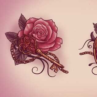 Татуировка с изображением ключа смотрится всегда потрясающе на любой части тела. При этом, ключ несет в себе некую таинственность, ведь окружающим становиться любопытно, что же данный ключ способен открыть. Татуировка может состоять из изображения одного ключа, либо с дополнительными элементами. Ключ может быть завязан красивой лентой, либо быть в клюве или когтях птицы. Часто изображают ключ, который держит в своих цепких когтях сова. Так же ключ может изображаться в паре с замком, либо замочной скважиной. Прекрасно дополняет изображение ключа красивая надпись.