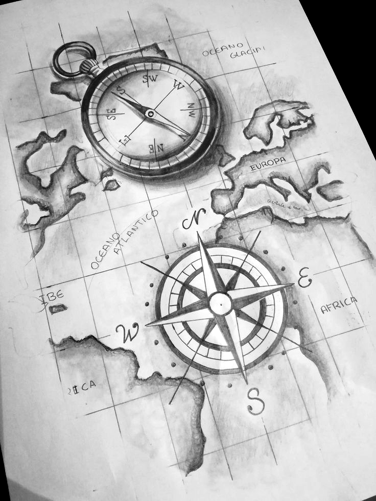 Давайте посмотрим на различные идеи дизайна татуировки компаса: