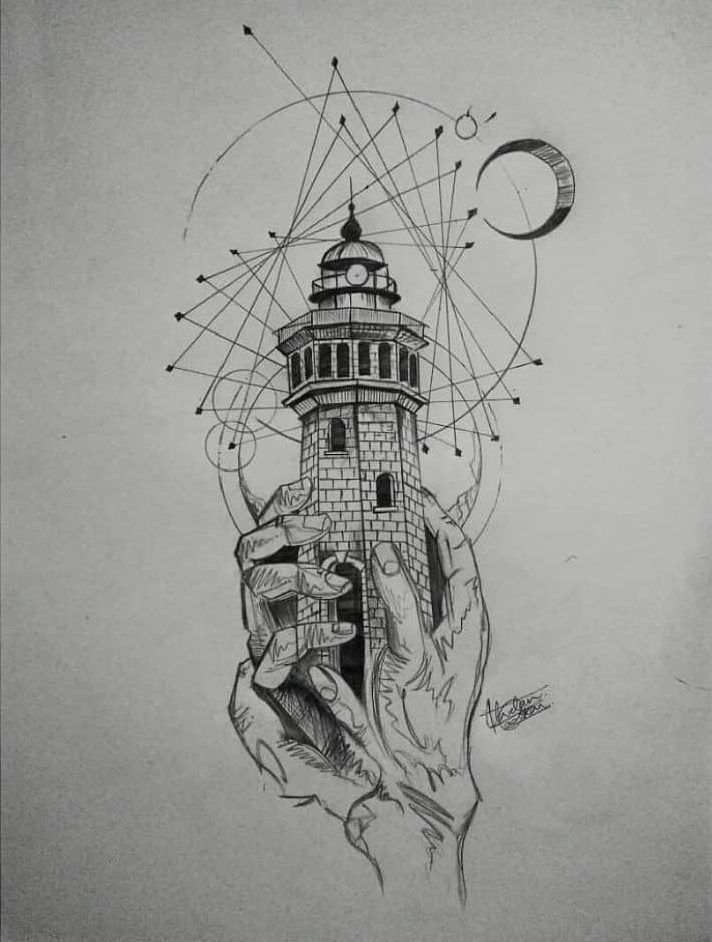 Тату маяк для мужчин Яркий маяк мужественных идей. … Со временем башни возникли в земле, используя маяки света от пылающих дров и угля для лучшей видимости.