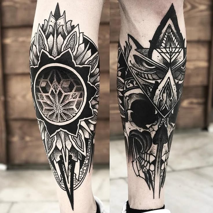 Идеи татуировки на всю голеньТатуировки на обе голени