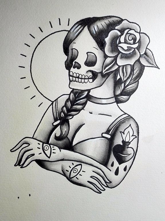 Мужские и женские эскизы тату в стиле олд скул