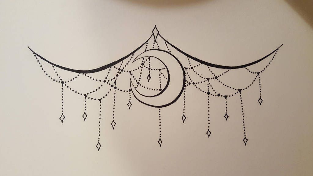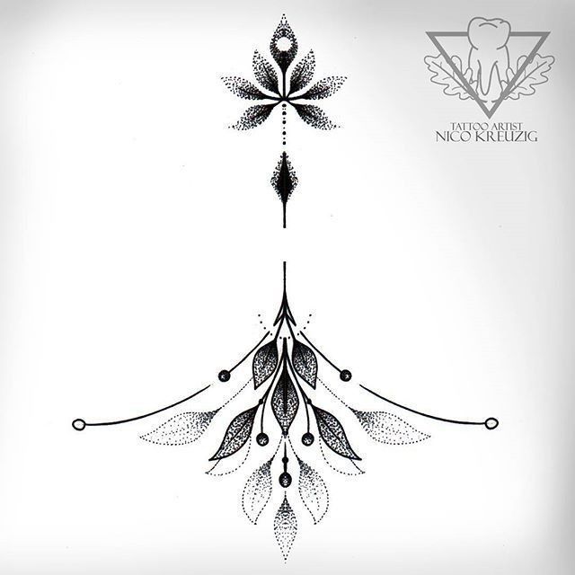 На изображении показаны тонкие линии и пунктирные иллюстрации. Татуировка выглядит элегантно и размещается под грудью. Это чистая татуировка, которая требует минимальных усилий и требует меньше времени.