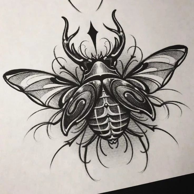 Рисунок татуировки жука. иллюстрация жука-скарабеяPREMIUM