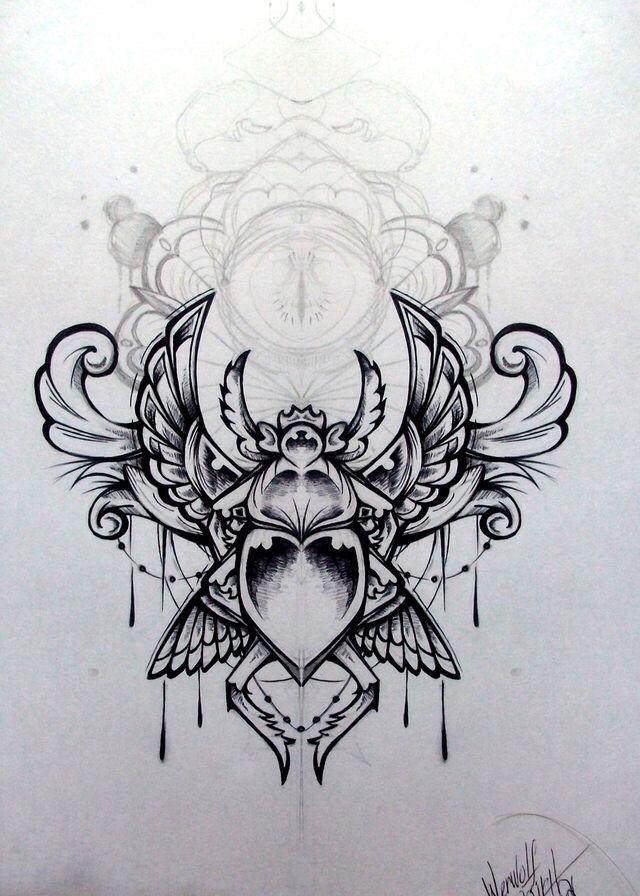 Жук-скарабей, эскиз, символ фараона, татуировка. ПРЕМИУМ